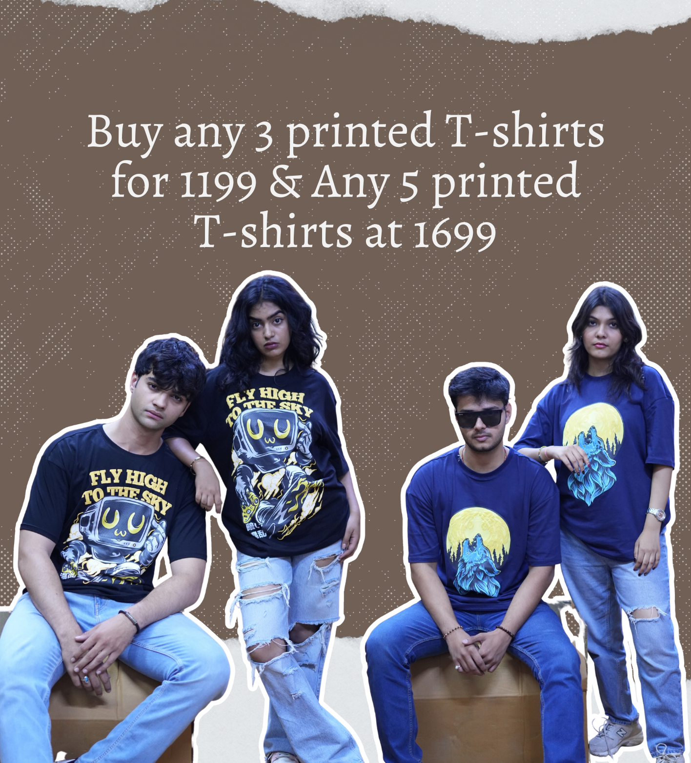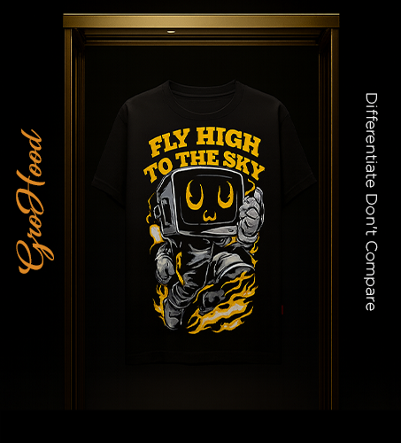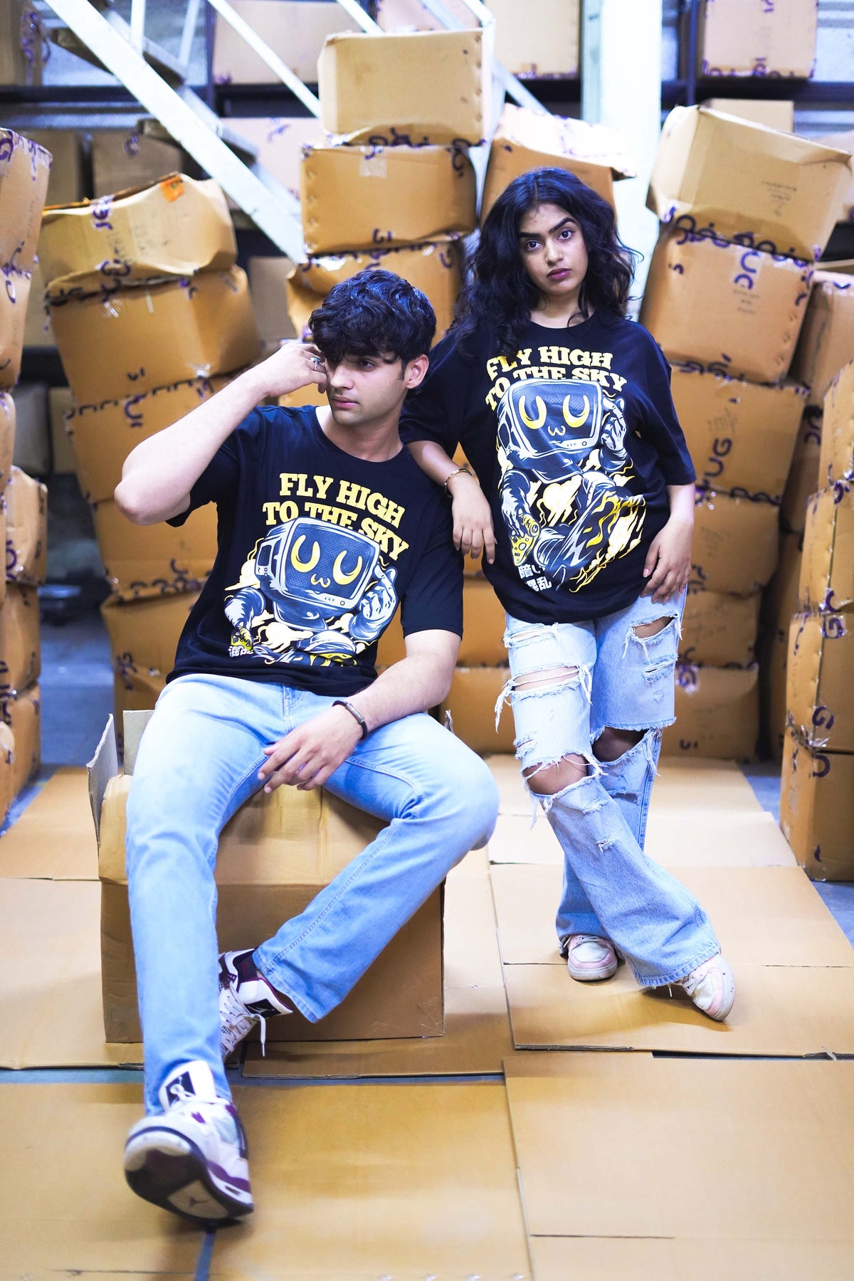Men's Black 'Fly High to the Sky' Graphic Oversized T-Shirt
