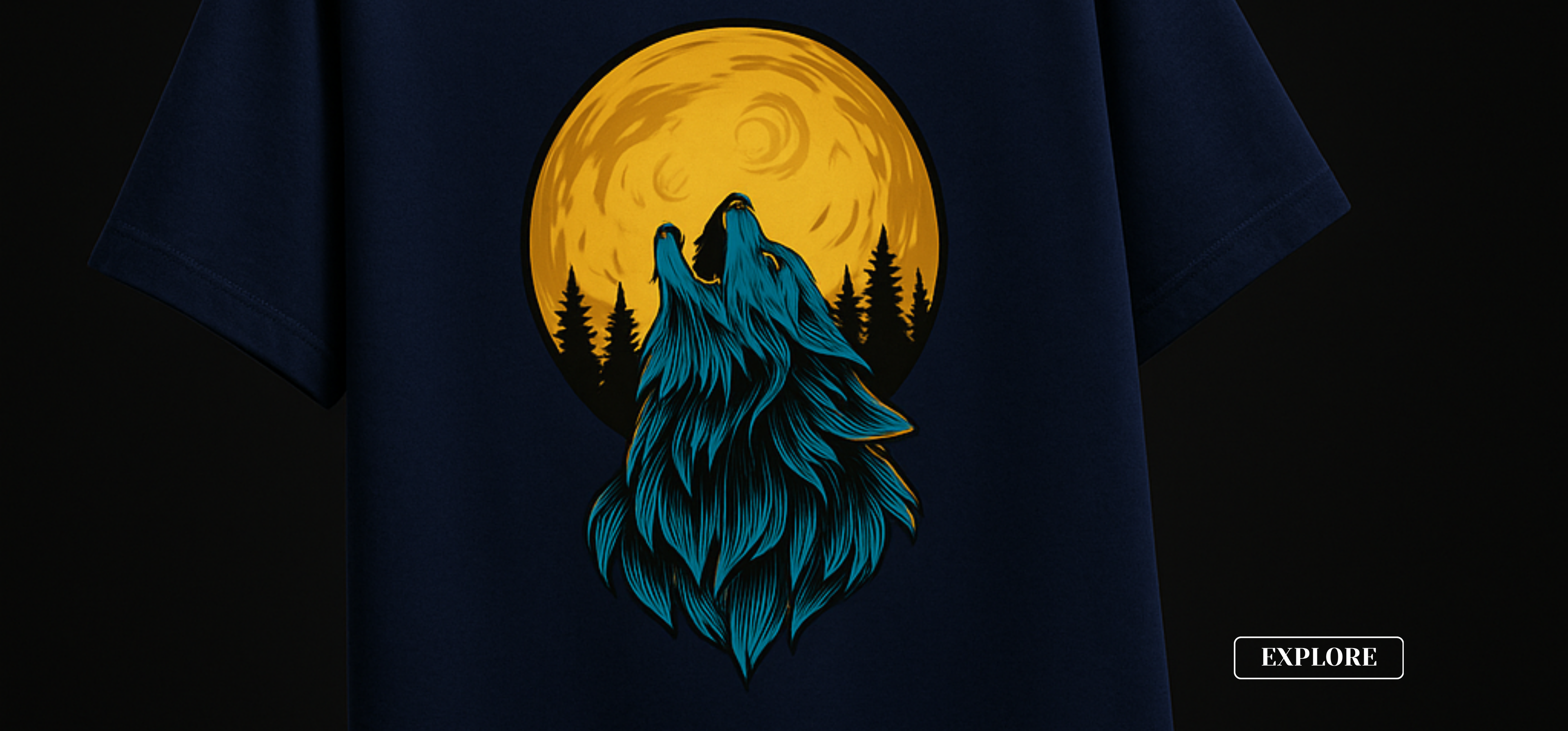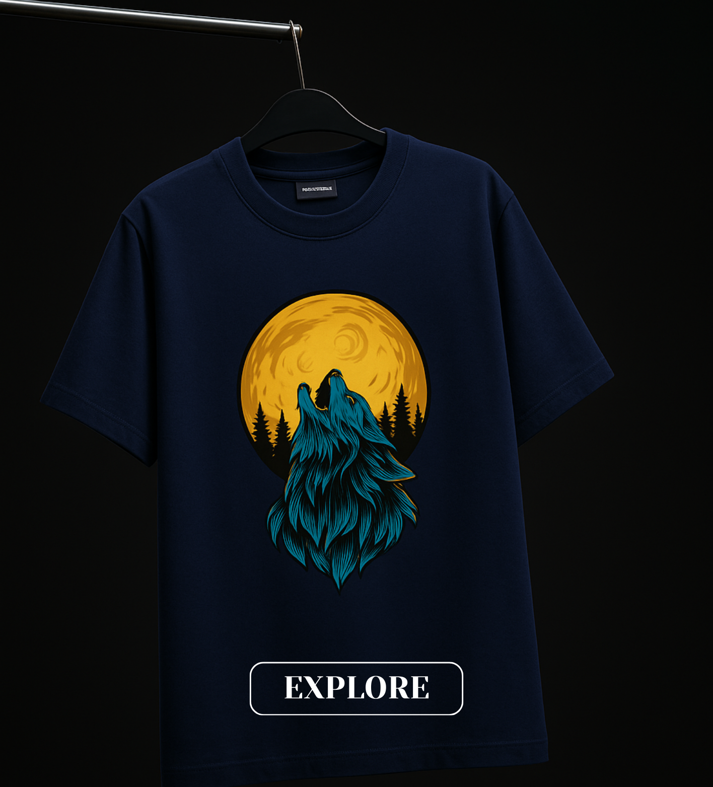 Women's Navy Blue 'Howling Wolf & Full Moon' Graphic Back Print T-Shirt