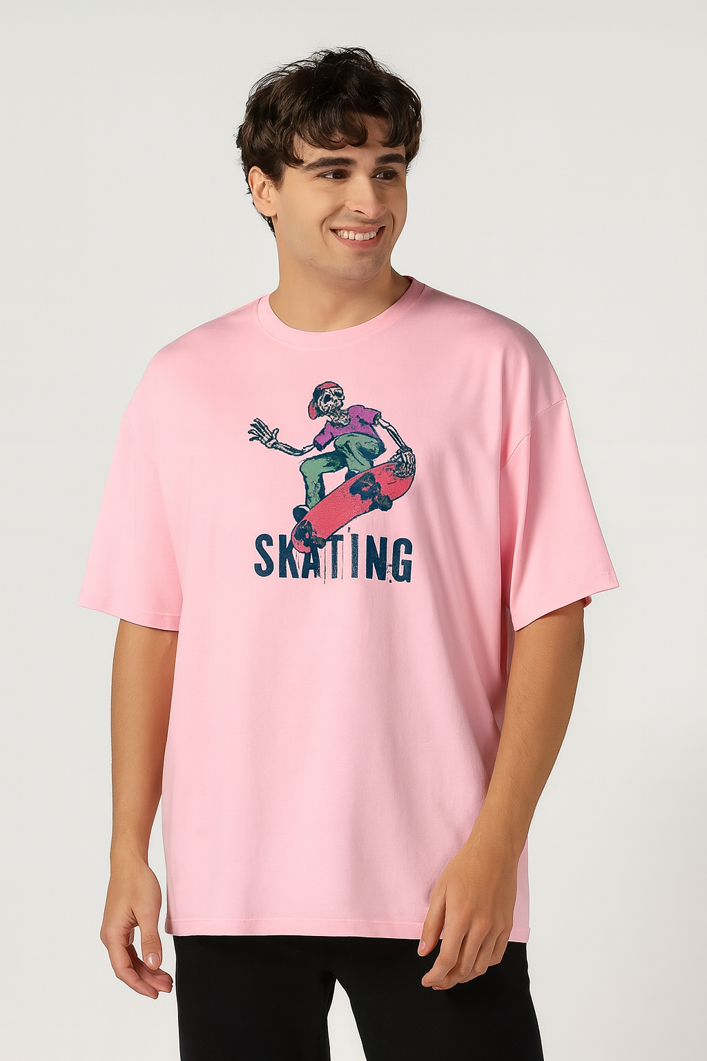 Men's Pink 'Skating Skeleton' Graphic T-Shirt