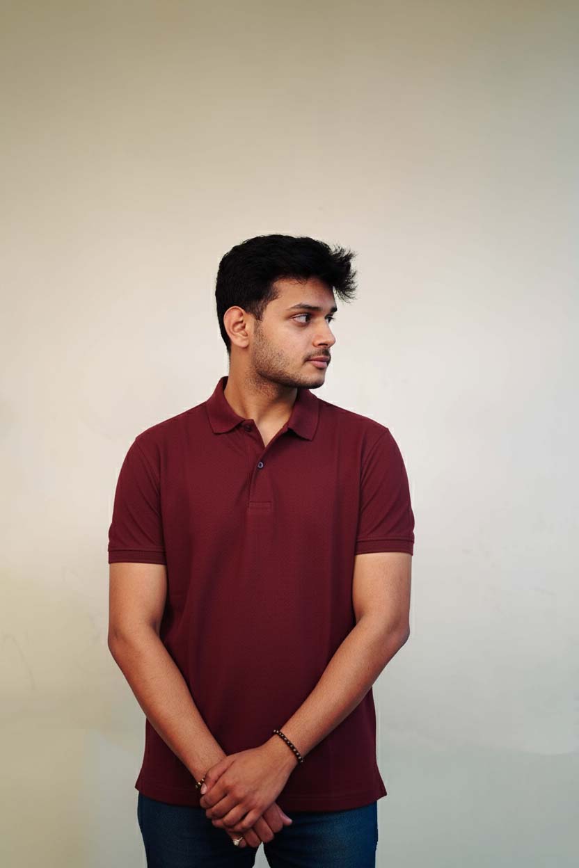 Men's Maroon Polo T-Shirt - Regular Fit, Half Sleeve